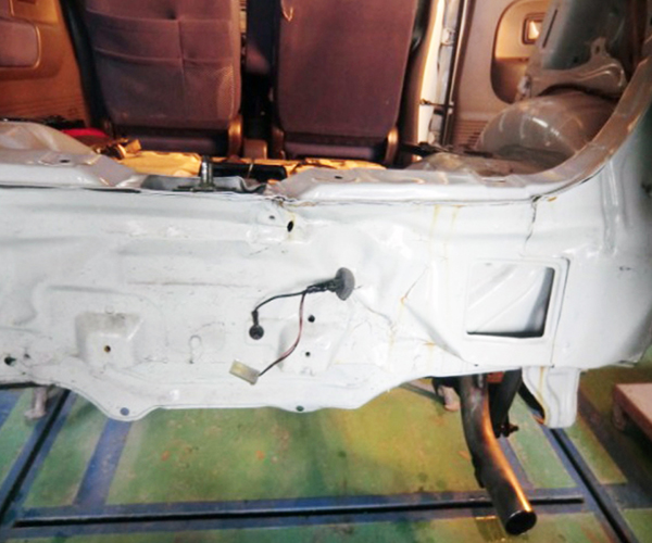 鈑金の途中で作業終了!? 内部に錆が発生し、トランクフロアには雨水